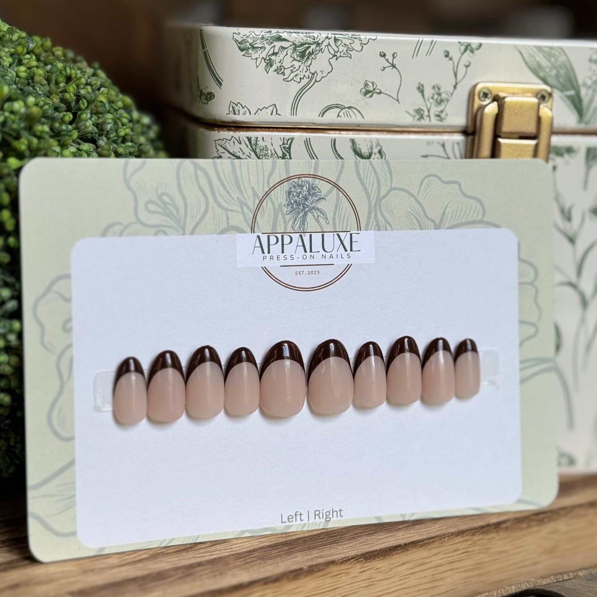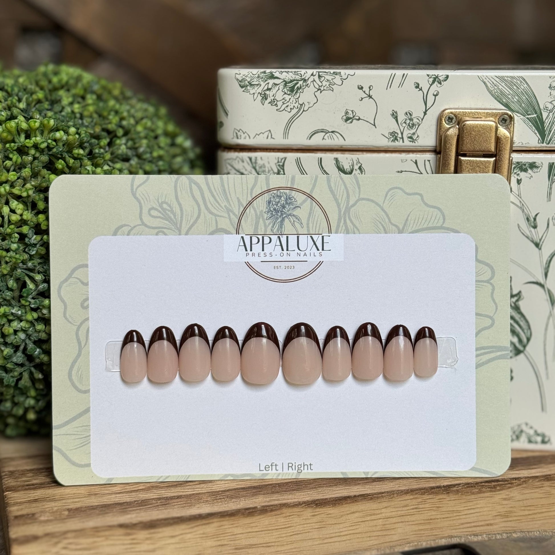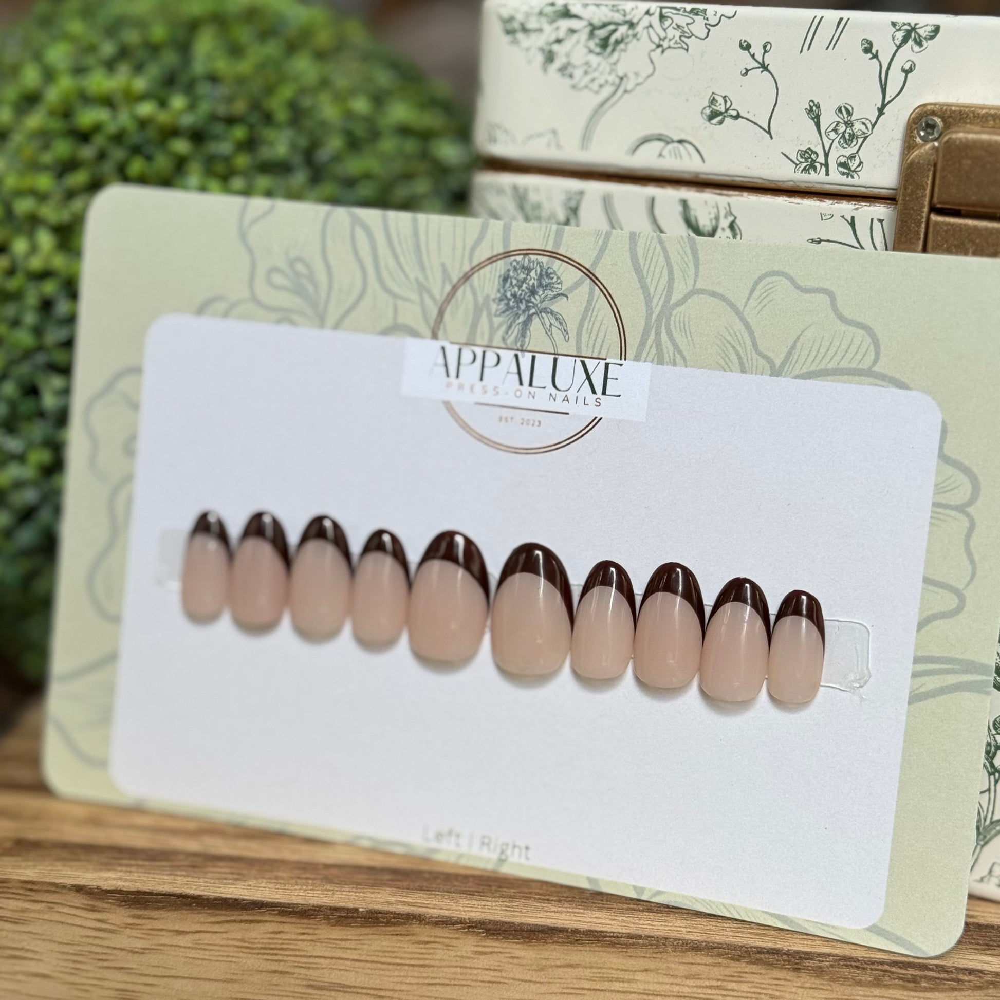 Our BROWN French Tips offer the classic French tip nails without the need to visit a nail salon. With sharp brown tips and pink nude base your French is sure to stand out. Our 100% gel nails offer a perfect fit and are reusable, making them perfect for creating salon-style nails at home.