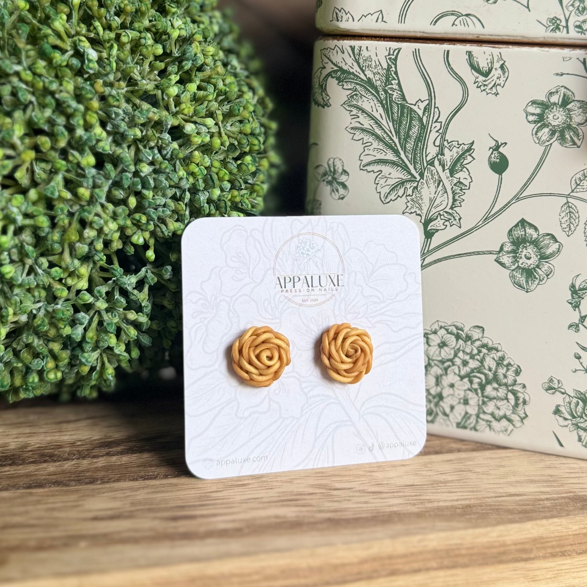 Radiate everyday elegance with these Golden Braided Rosette Polymer Clay Stud Earrings. Each round stud is hand-sculpted with a delicate braided texture in a rich metallic gold that catches the light beautifully. Crafted in the heart of the Appalachians, they bring a touch of luxury to any outfit — without the luxury price tag.