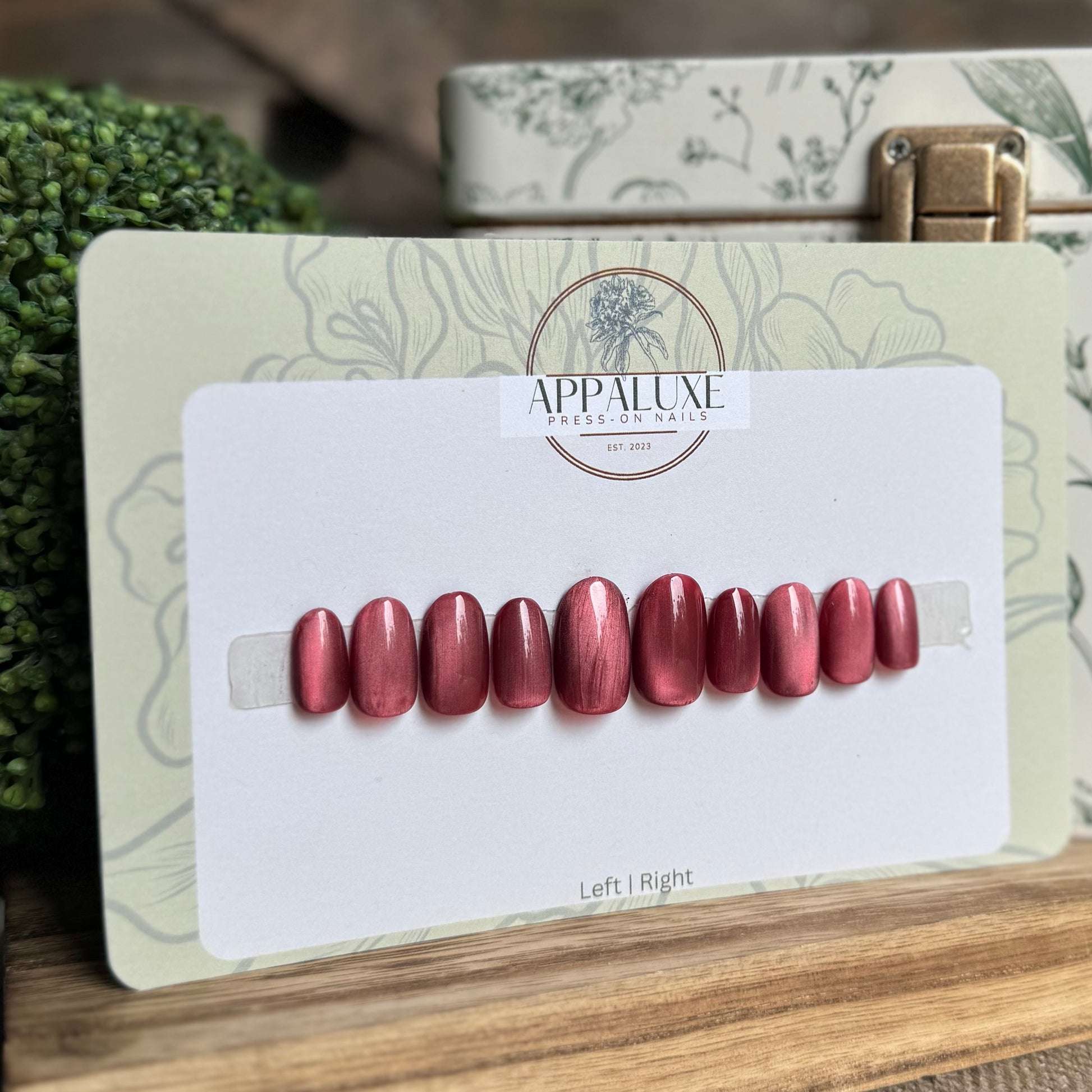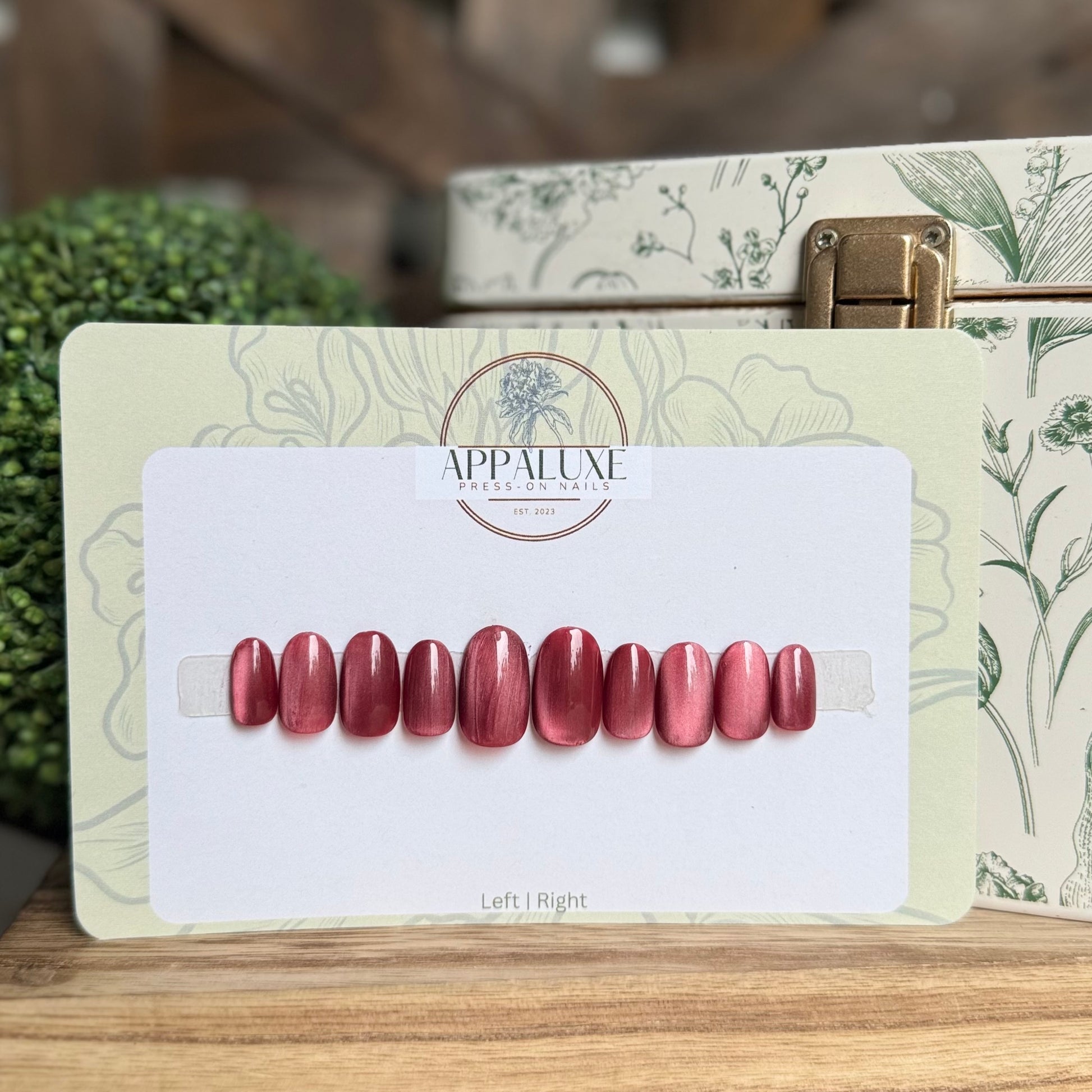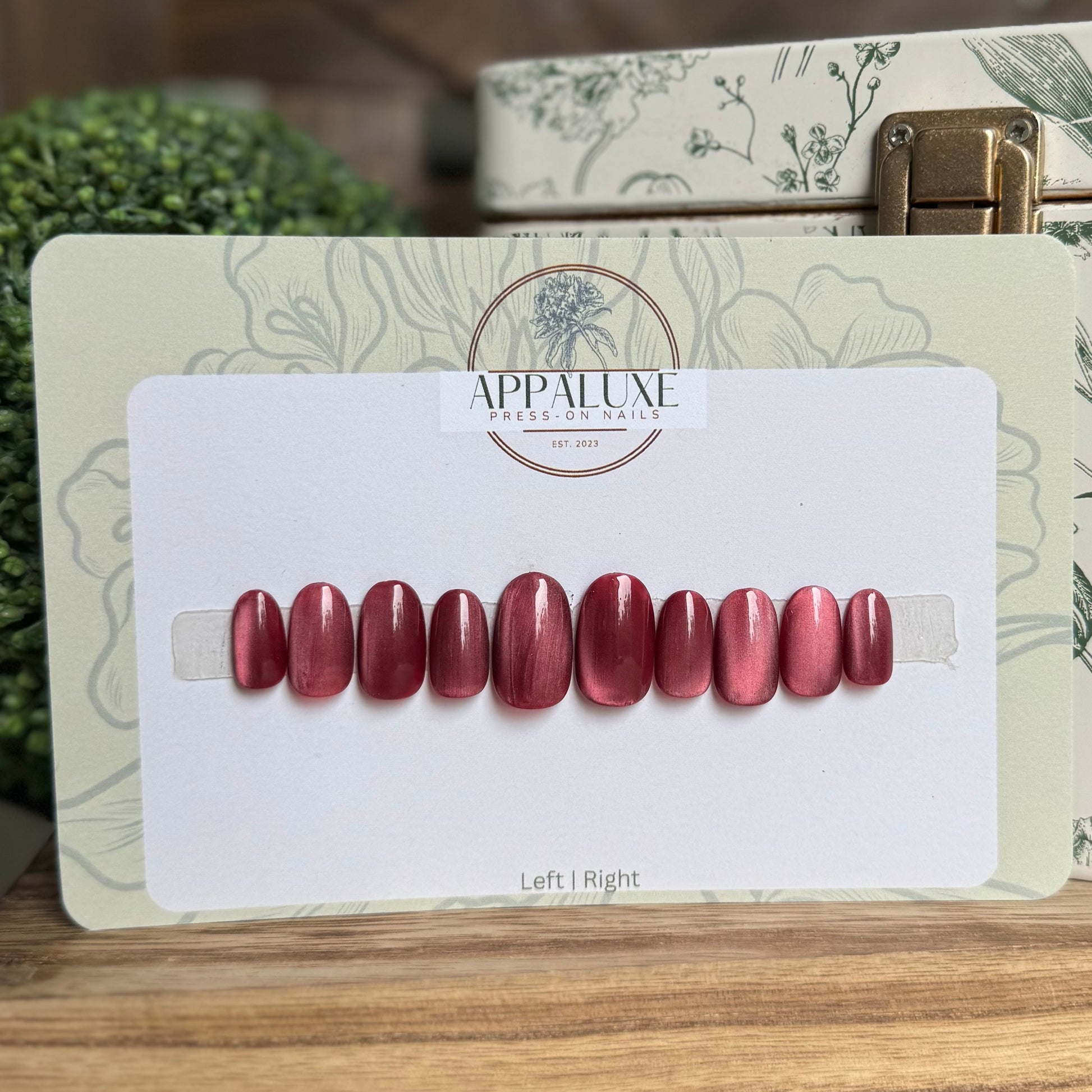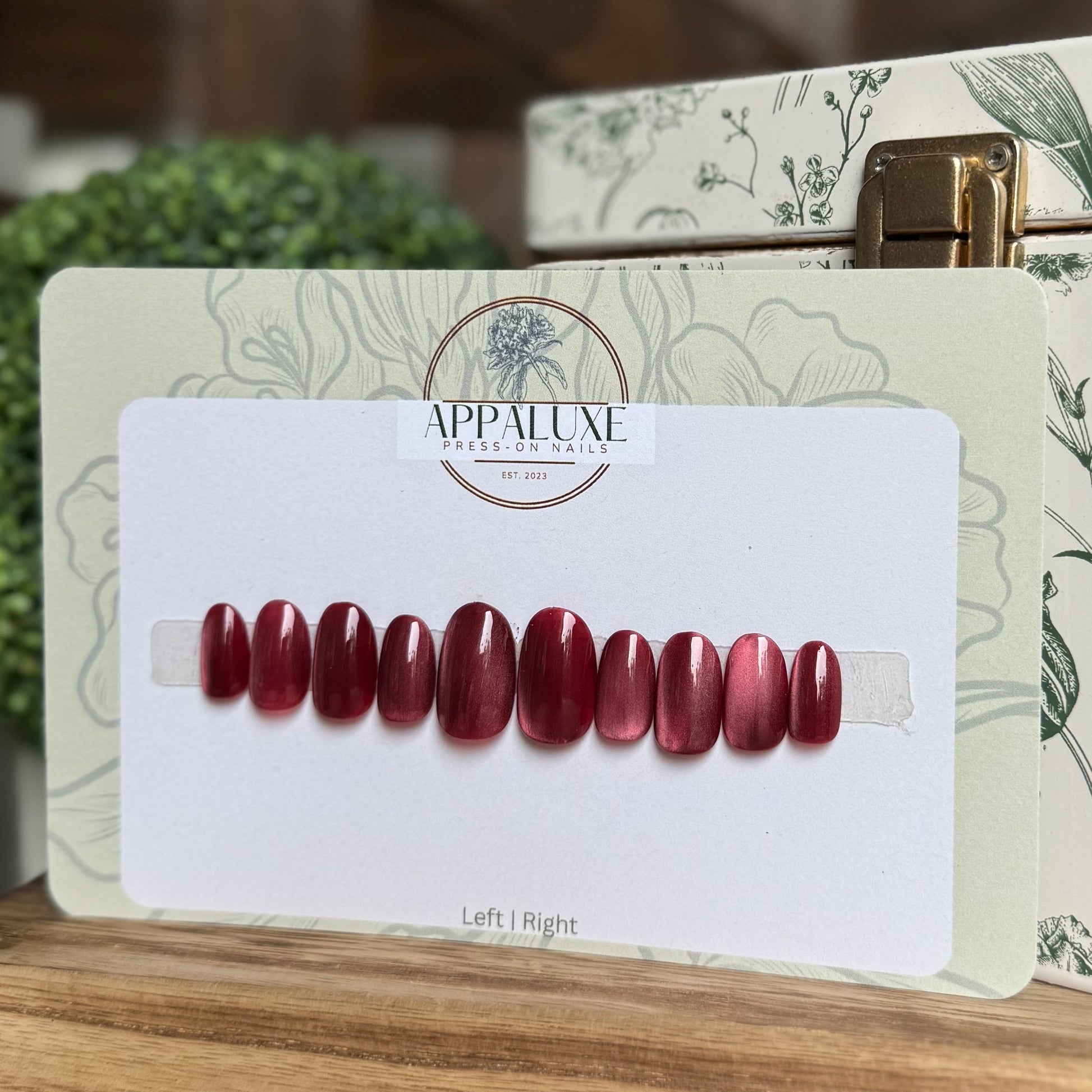 Get ready to fall in love with Candy Apple, a warm red silk cat eye nail set perfect for the holiday season. These press-on luxury nails add a playful pop of color and a mesmerizing shimmer to your look, making every gesture irresistibly eye-catching. Easy to apply and designed for lasting wear, Candy Apple brings festive charm right to your fingertips.