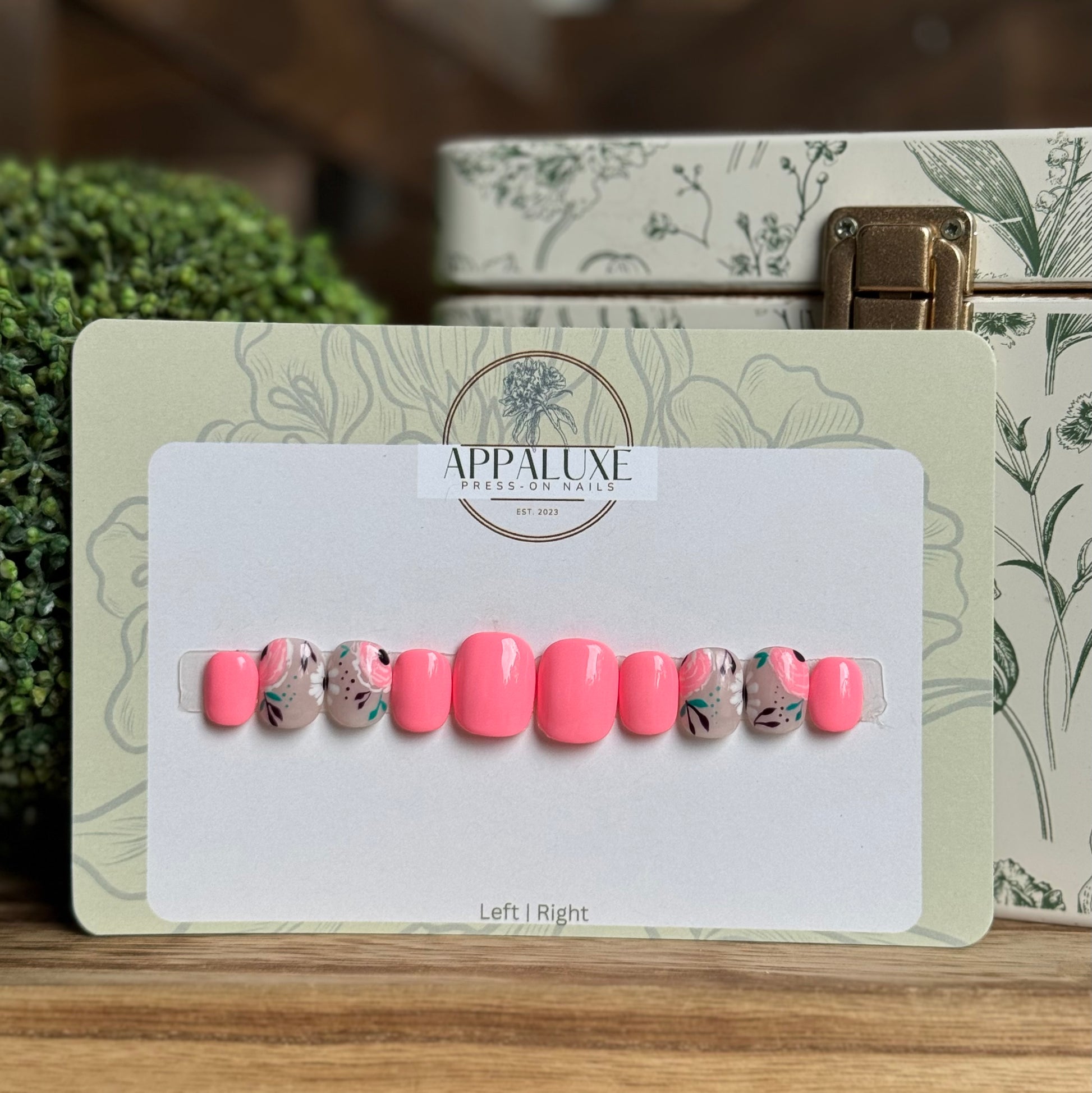 Get ready for spring and summer with our DESERT ROSE press-on nails! Featuring bold and bright pink abstract roses, these nails are perfect for adding a fun pop of color to your look. No need for a trip to the salon, these press-on nails are easy to use and will give you a flawless manicure in minutes.