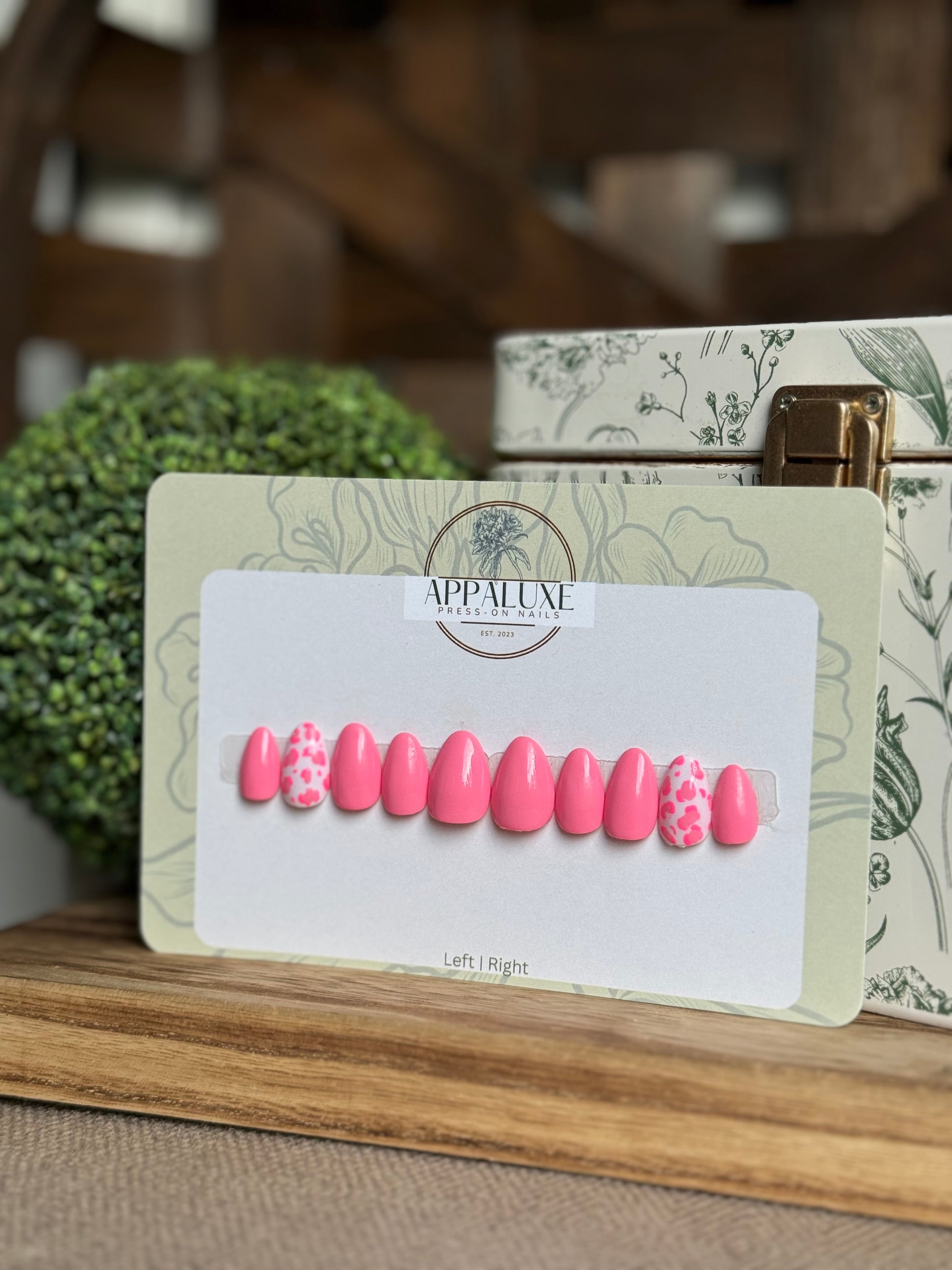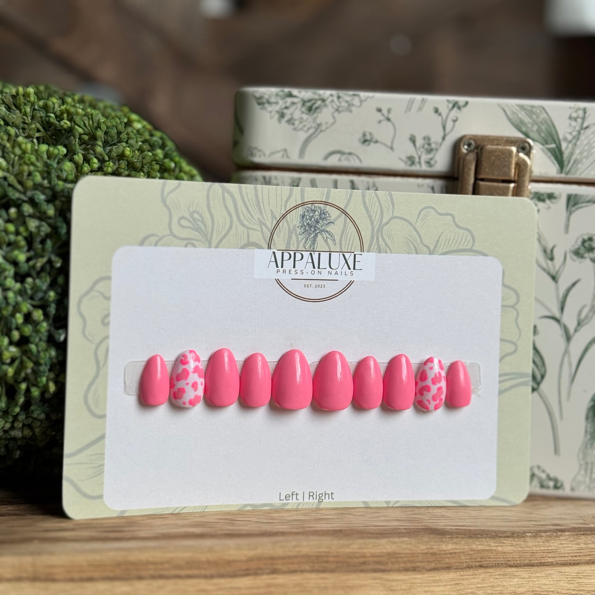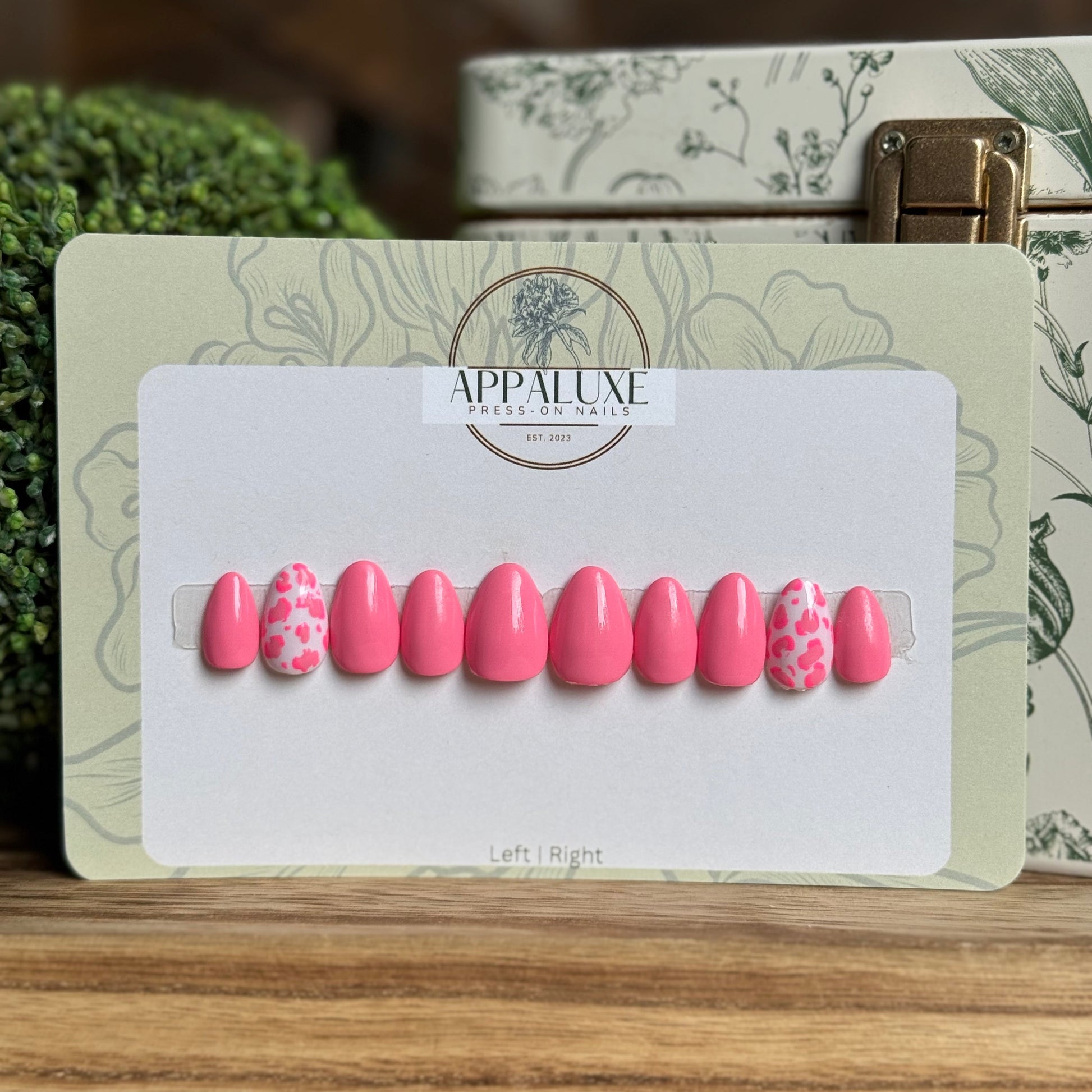 Unleash your inner fierceness with our FIERCE pink press on nails. These perfectly polished nails feature a bold and sassy pink leopard accent for added attitude. Get ready to make a statement!
