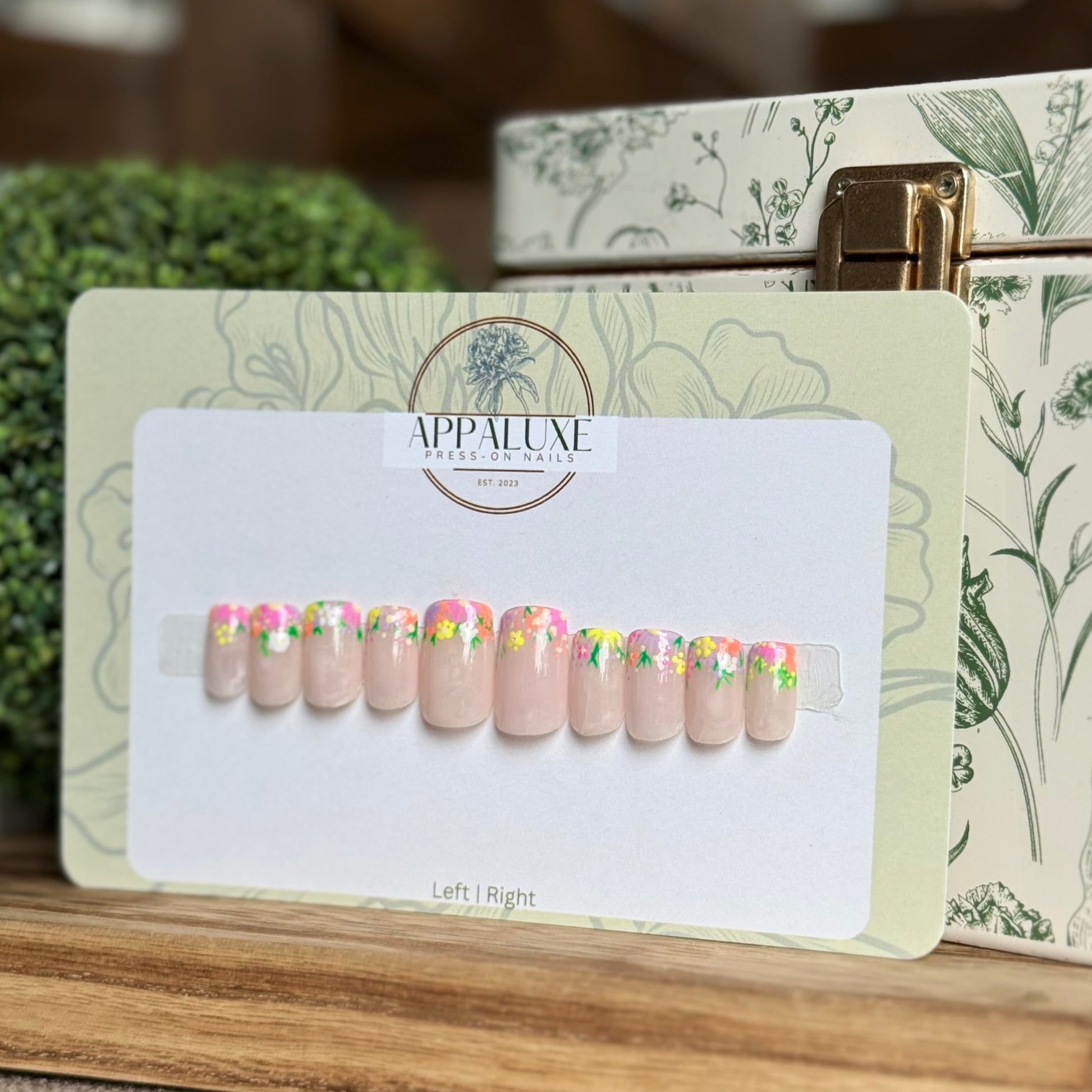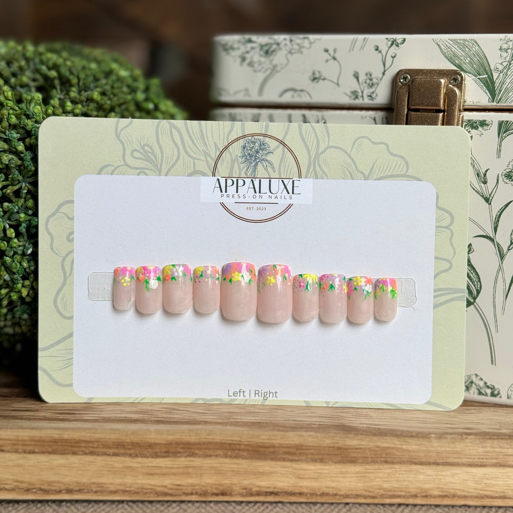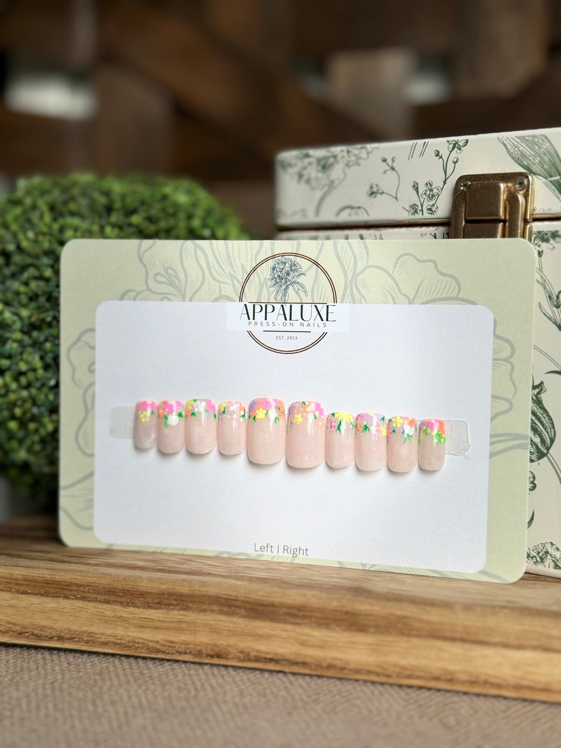 All AppaLuxe Nail Sets are preorder not pre-made so once you place your order along with your nail sizes is when I will be able to begin working on your nails. For current processing times please check our “Processing Times” page under “More Information” or click here. Once an item is shipped I no longer have control on how long the item will take to arrive. When ordering for specific occasions please consider that busy times of the year (eg. November-December) may cause longer than usual shipping and prepare in advance.