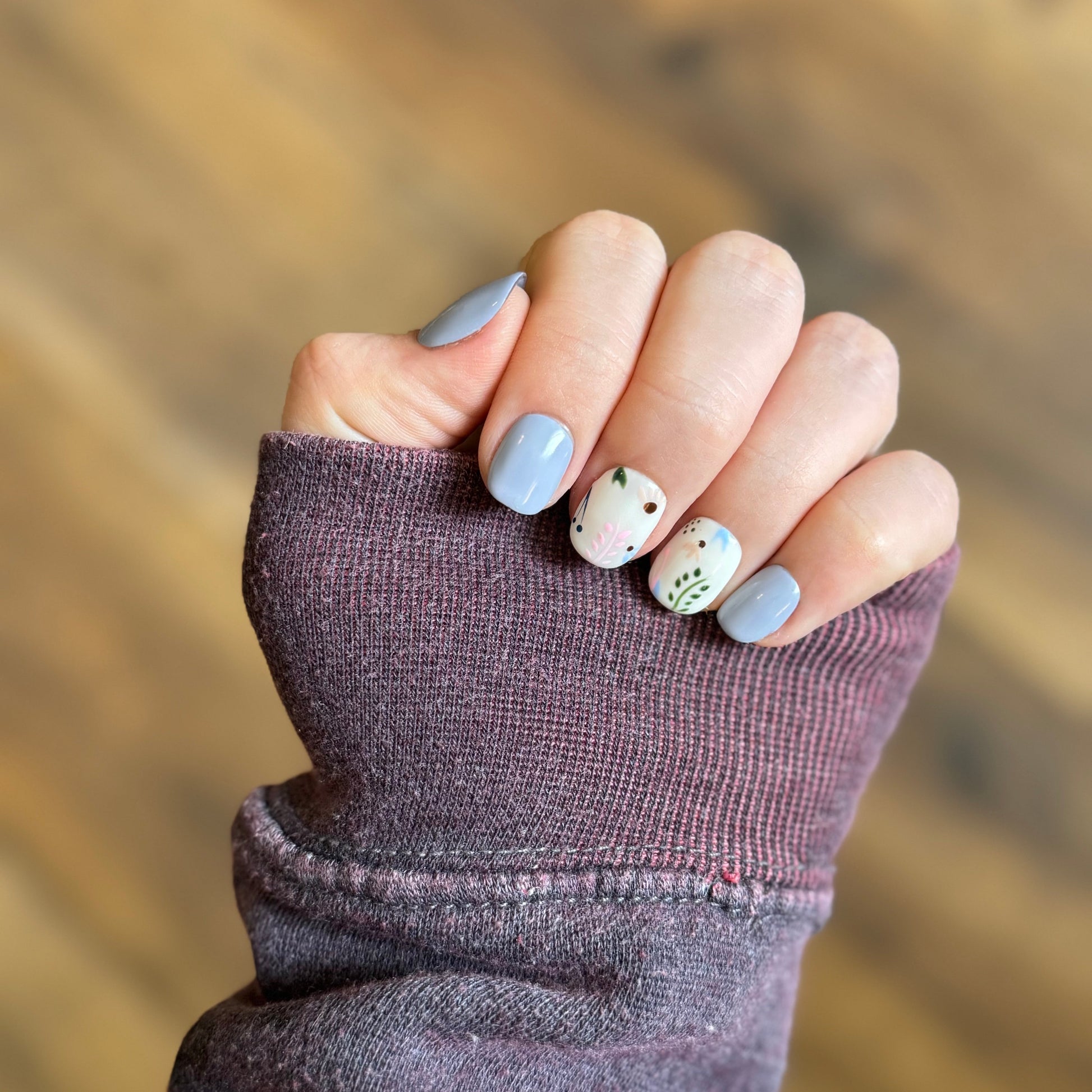 Indulge in the perfect spring-inspired mani with our FLORAL MILK BATH press on nails! The milky white base is adorned with delicate pastel florals, while the creamy periwinkle blue adds a touch of elegance. Get salon-worthy nails in minutes.