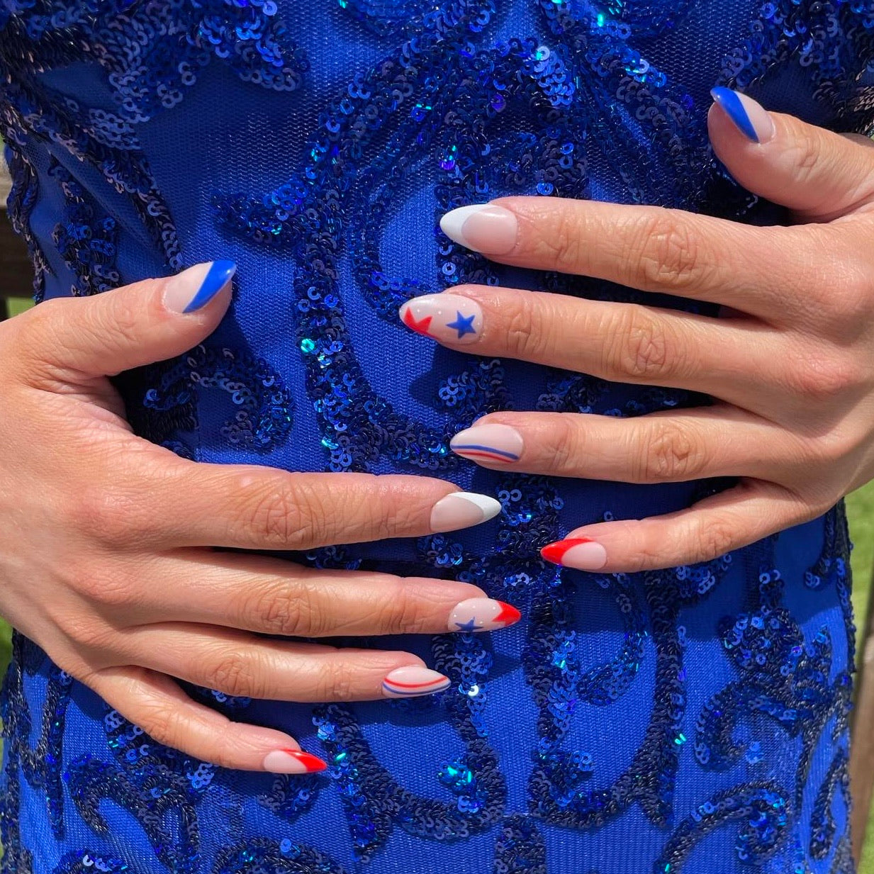 These RED WHITE & BLUE Beauties are sure to show your American Pride. A classy yet fun set to show the French style and those stars and “stripes”