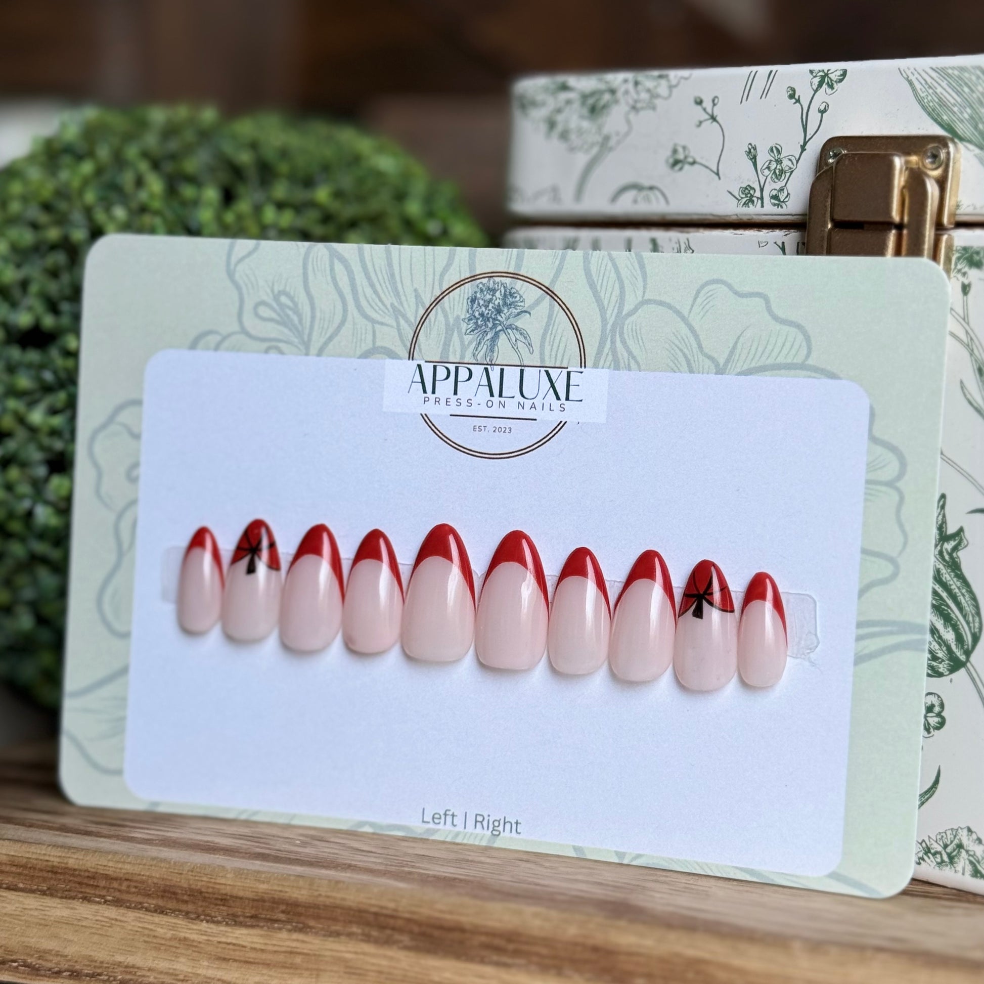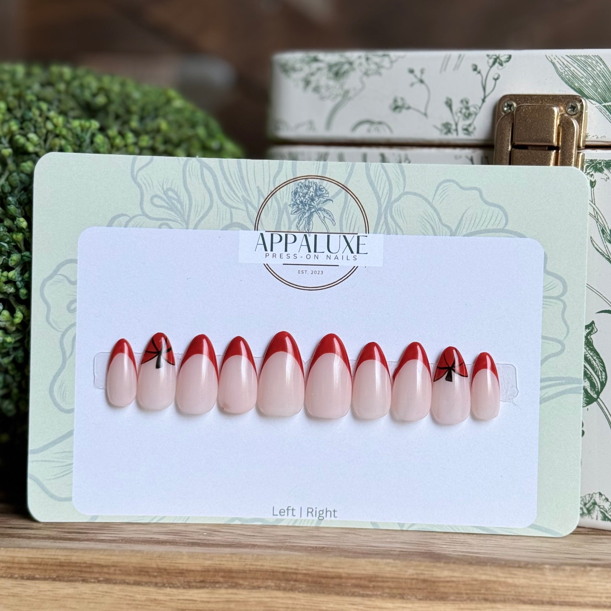 All AppaLuxe Nail Sets are preorder not pre-made so once you place your order along with your nail sizes is when I will be able to begin working on your nails. For current processing times please check our “Processing Times” page under “More Information” or click here. Once an item is shipped I no longer have control on how long the item will take to arrive. When ordering for specific occasions please consider that busy times of the year (eg. November-December) may cause longer than usual shipping and prepare in advance.