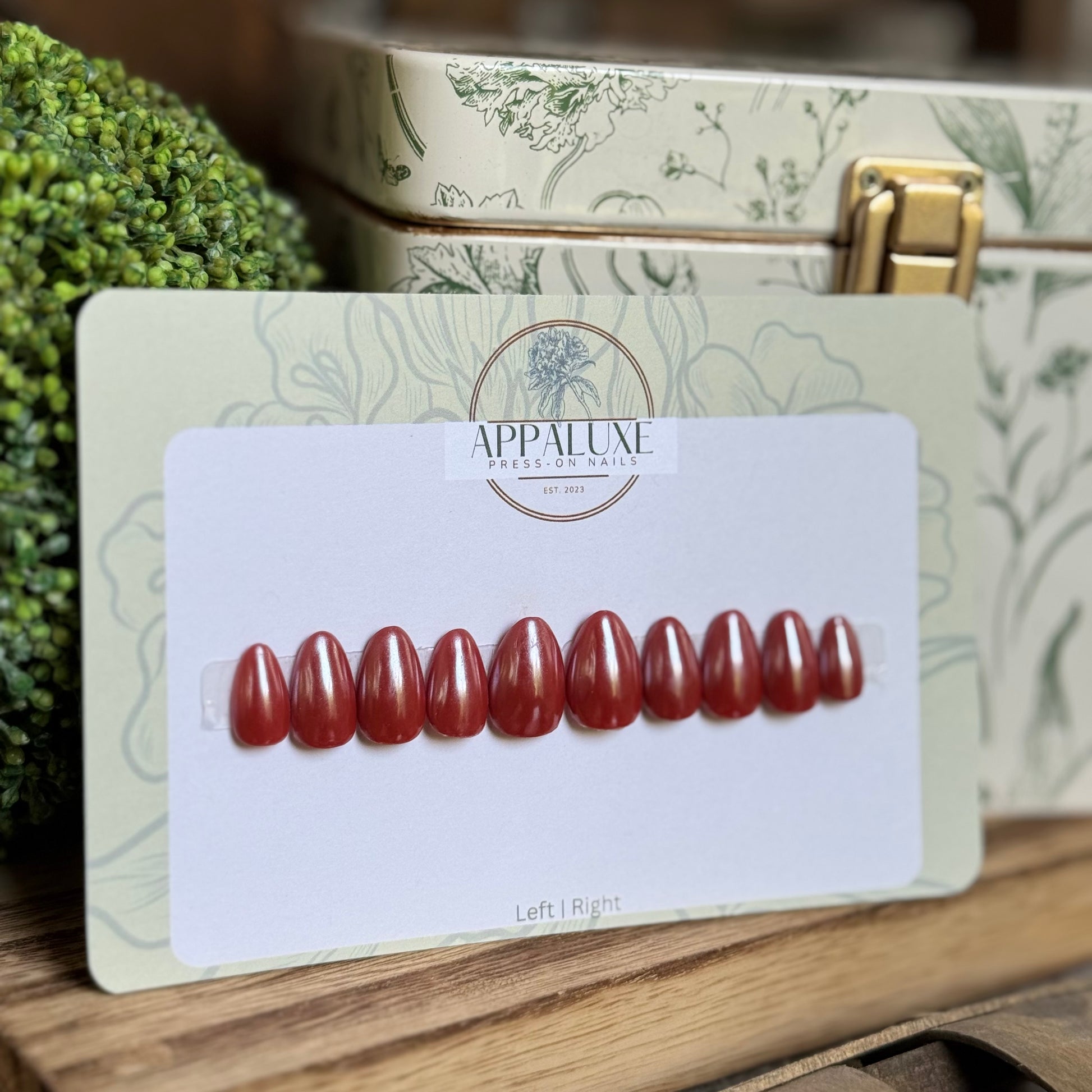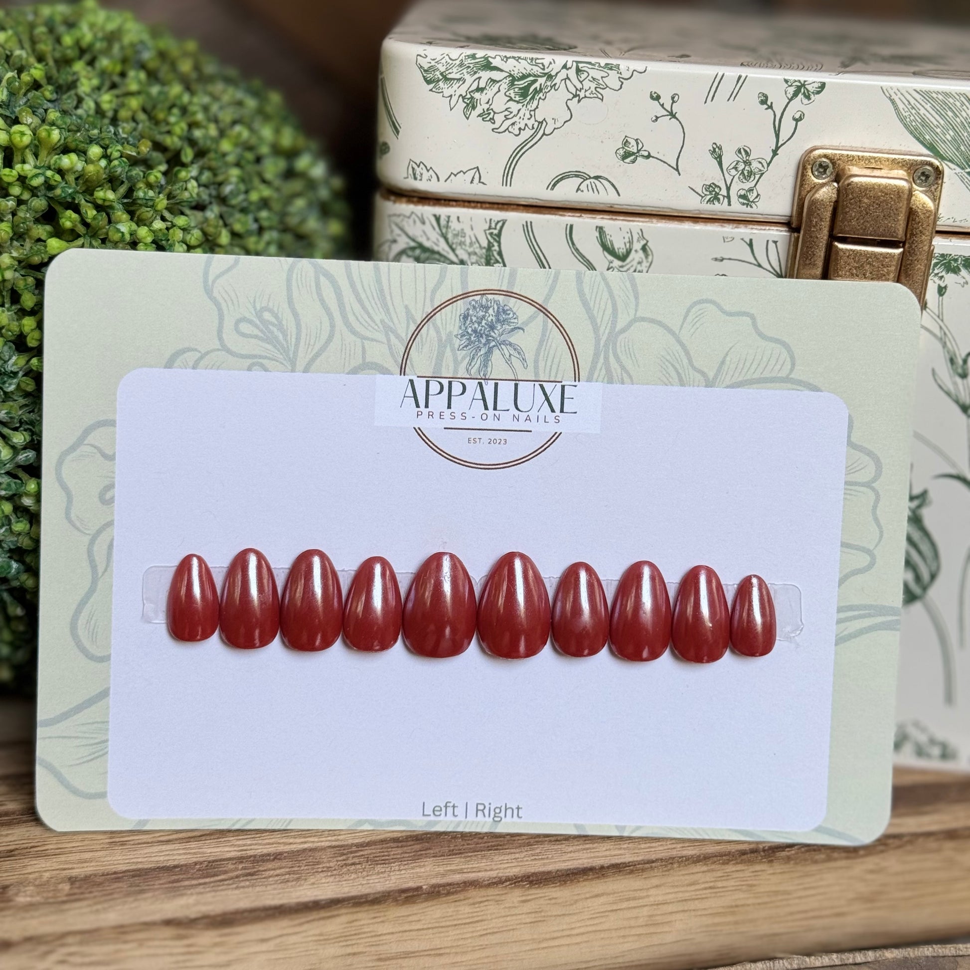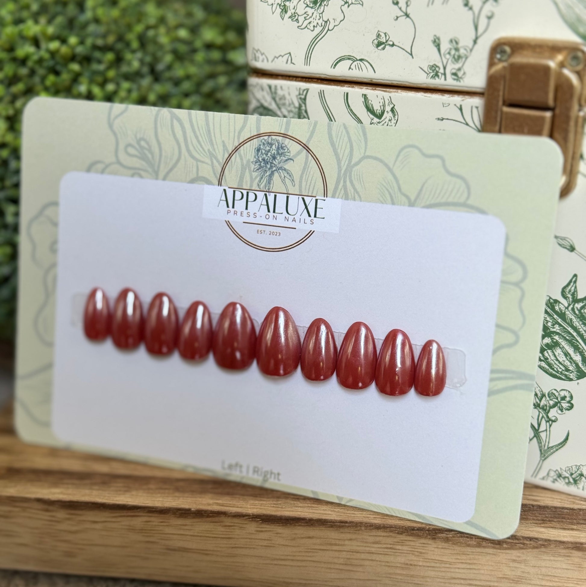 Introducing the SPICED CIDER, a must-have for the fall season. With its deep orange color and glaze top, these nails will add a touch of cozy coffee shop vibes to any look. Don't miss out on this viral trend that pairs perfectly with your favorite sweaters and boots. %100 fall-approved!