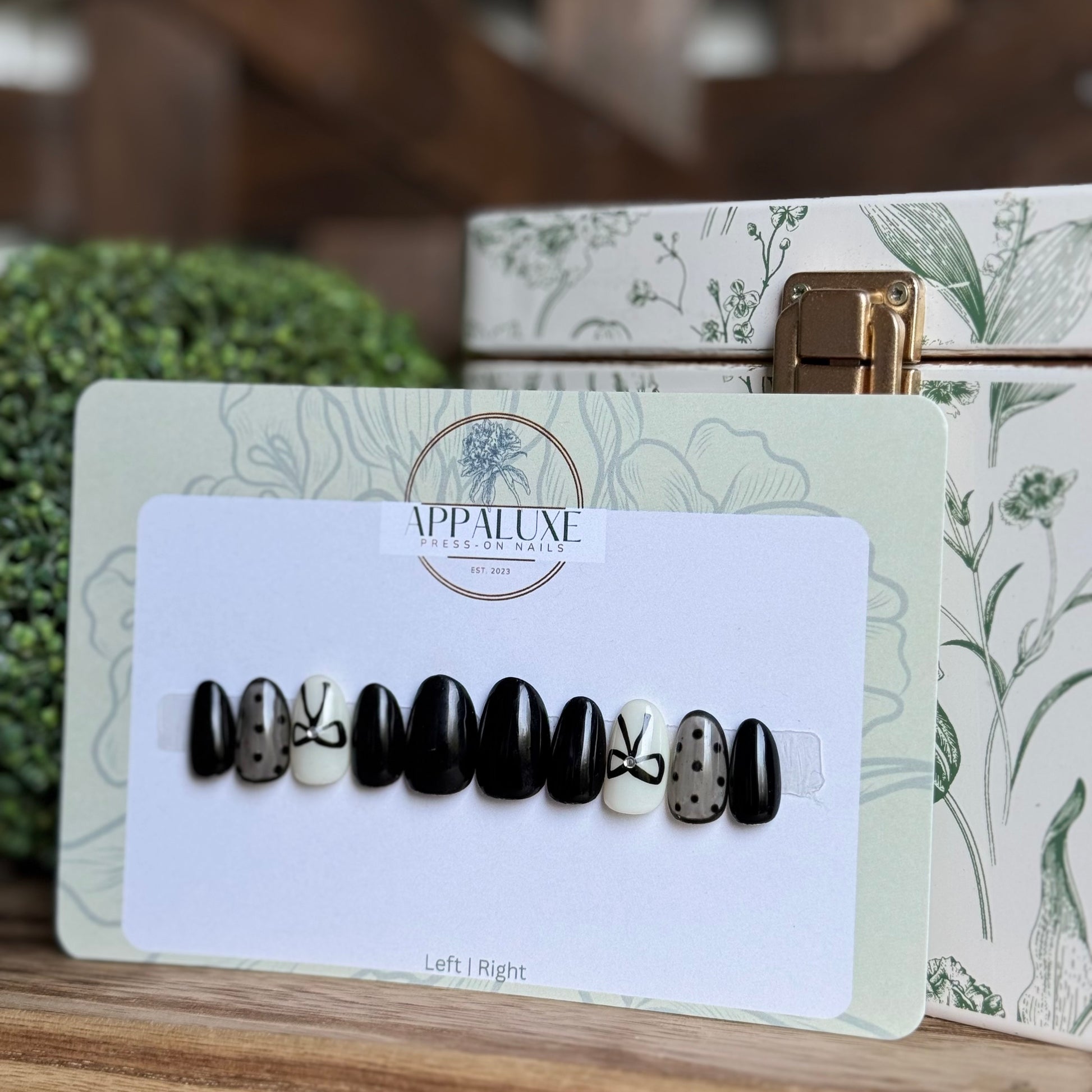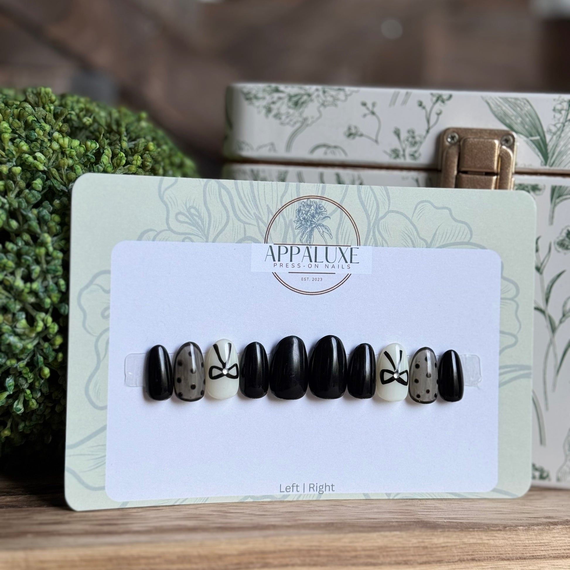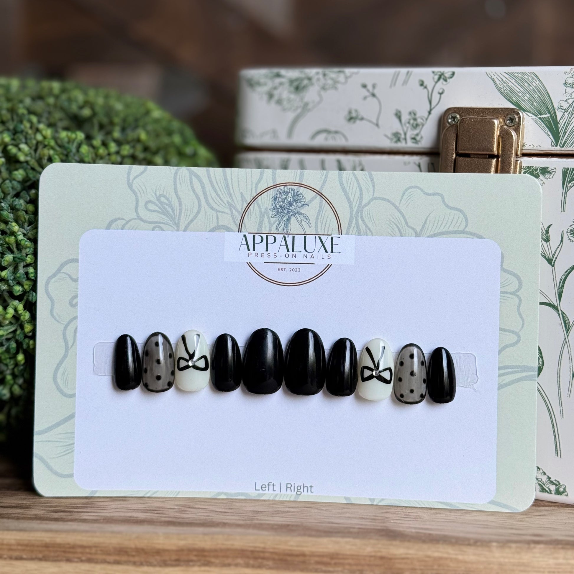 All AppaLuxe Nail Sets are preorder not pre-made so once you place your order along with your nail sizes is when I will be able to begin working on your nails. For current processing times please check our “Processing Times” page under “More Information” or click here. Once an item is shipped I no longer have control on how long the item will take to arrive. When ordering for specific occasions please consider that busy times of the year (eg. November-December) may cause longer than usual shipping and prepare in advance.