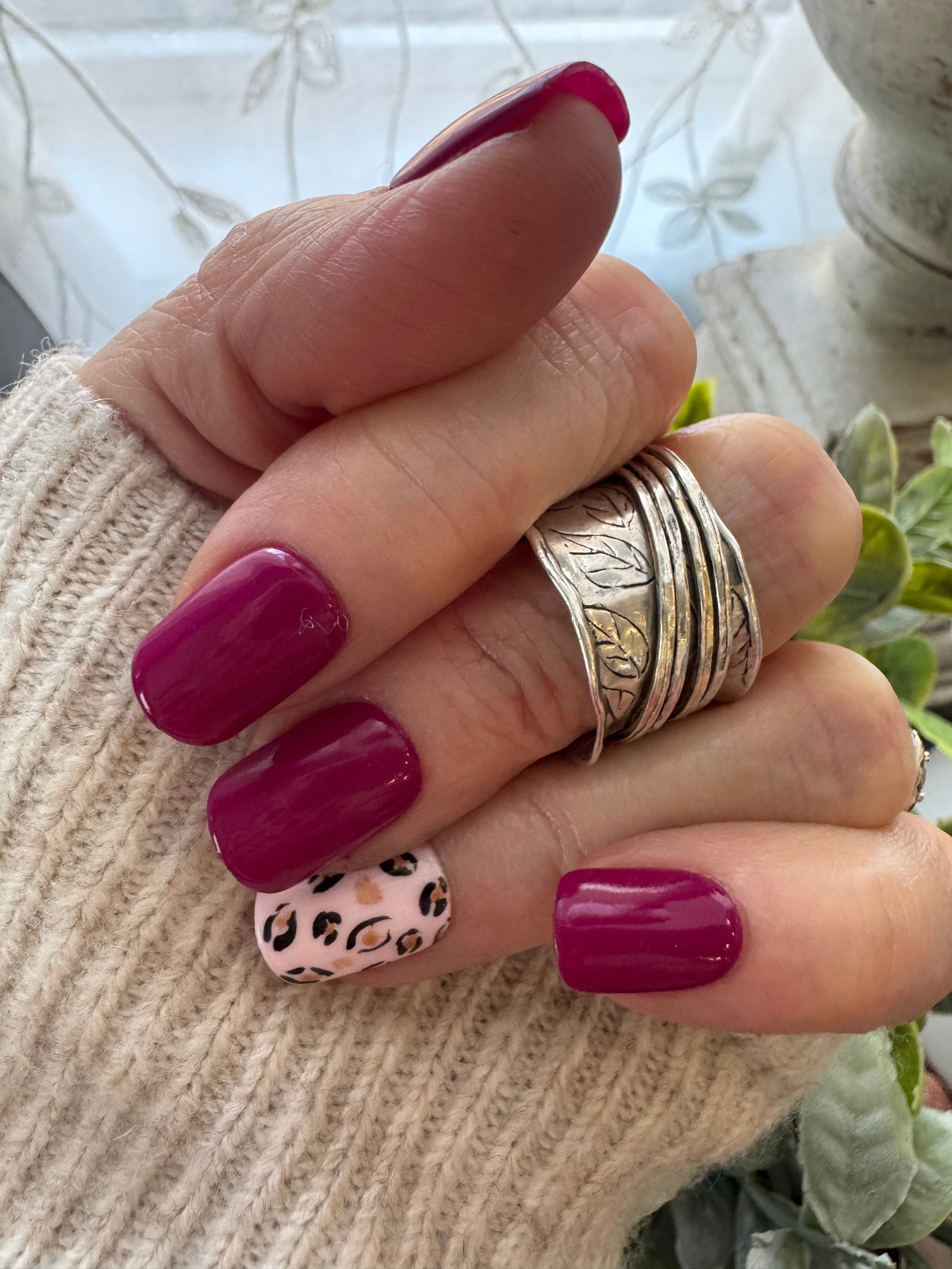 Unleash your wild side with ROYAL LEOPARD press on nails! These bold nails feature a mix of rich berries, delicate pinks, and glistening gold leopard spots. Perfect for those who love to take risks and make a statement. Nail your next look with ROYAL LEOPARD!