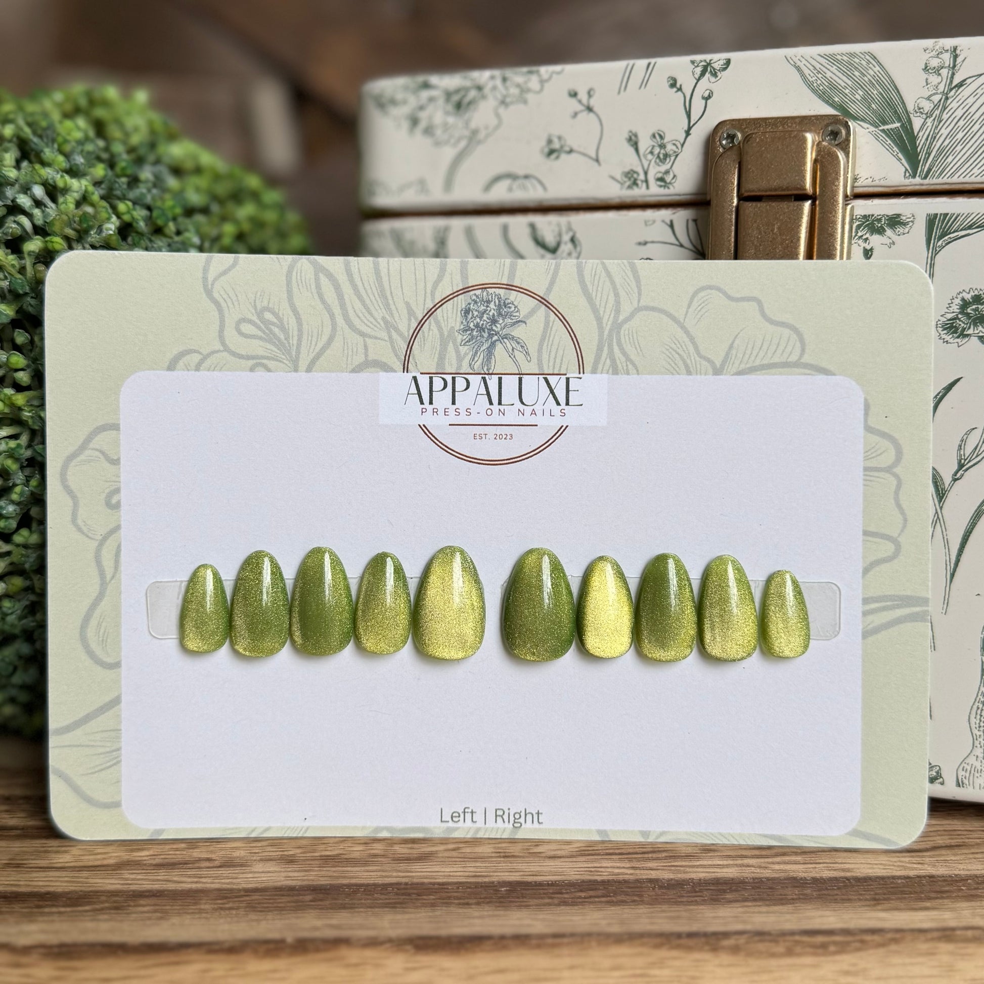 Add a burst of sparkle to your look with SOUR APPLE, our playful lime green glitter cat eye press-on nails. Handmade for a perfect fit, these luxury nails deliver eye-catching charm without the fuss of salon visits. Slip them on and let your fingertips shine with bold, fruity fun!