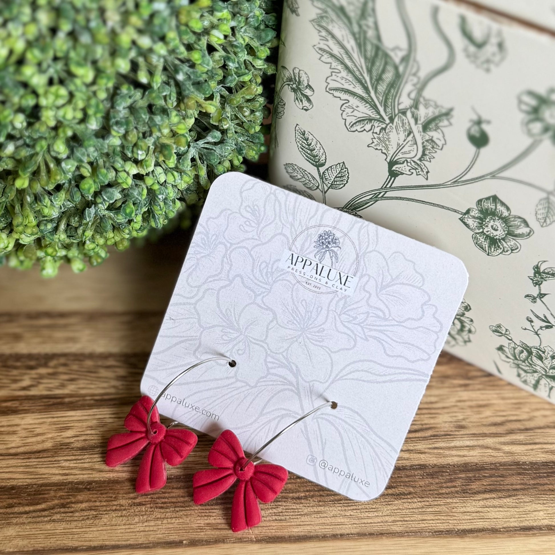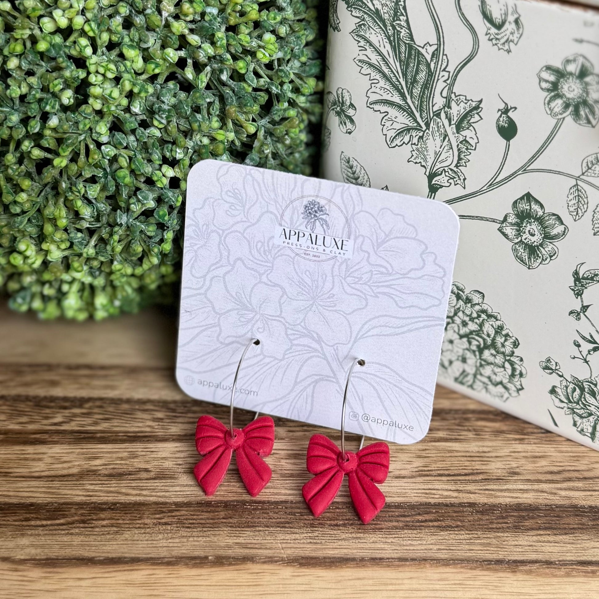 Discover the perfect blend of style and versatility with these trendy polymer bow earrings on hoops. Lightweight and comfortable, they effortlessly elevate any outfit throughout the year—from everyday wear to festive holiday celebrations. Don’t miss out on this must-have accessory that adds a playful yet refined touch to your look wherever you go.