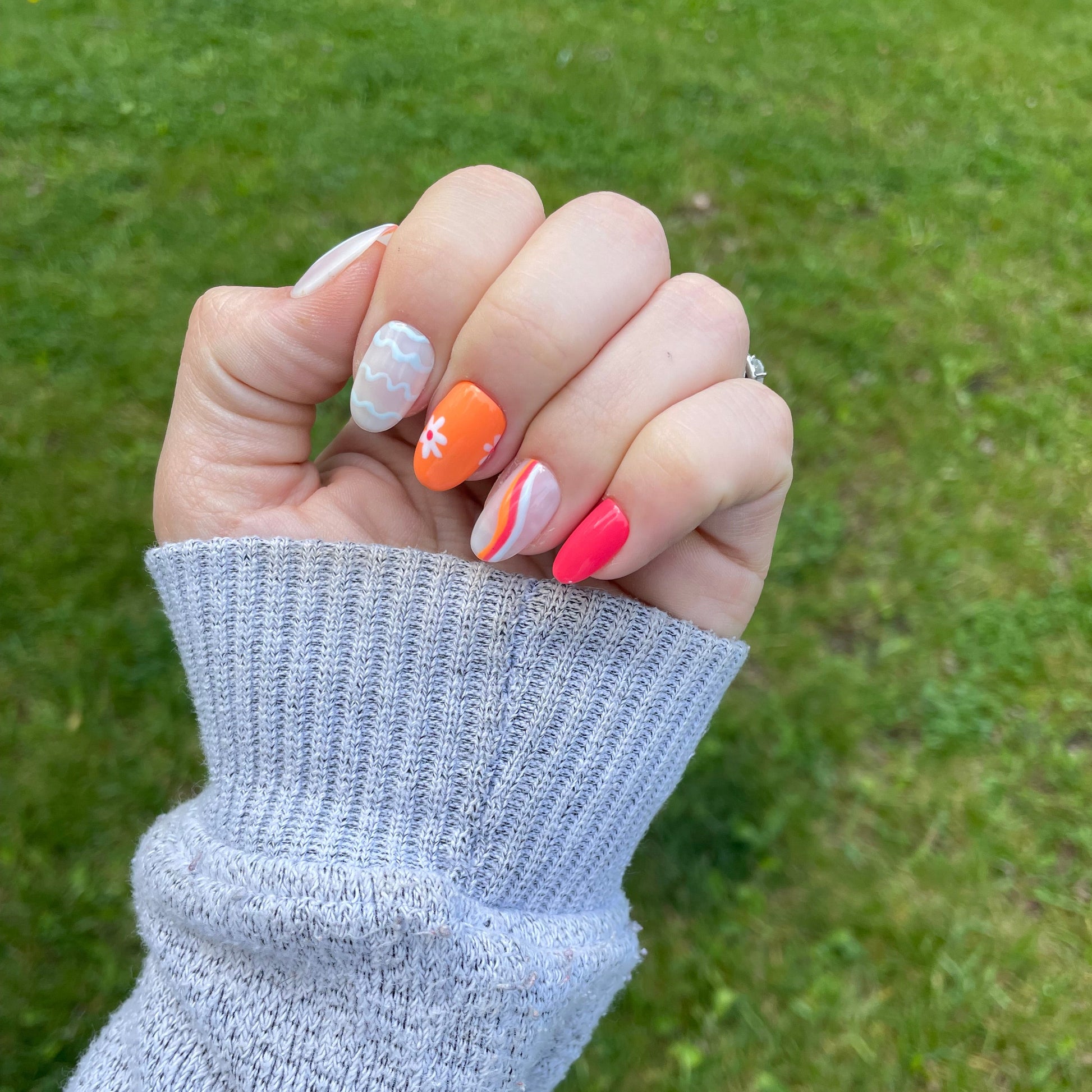 Capture the vibrant energy of sunny days with these bright, swirling press-on nails. Featuring lively colors and radiant sunbeam designs, they effortlessly brighten your look while offering easy, salon-quality application. Perfect for adding a cheerful touch to any outfit, these nails bring sunshine wherever you go.