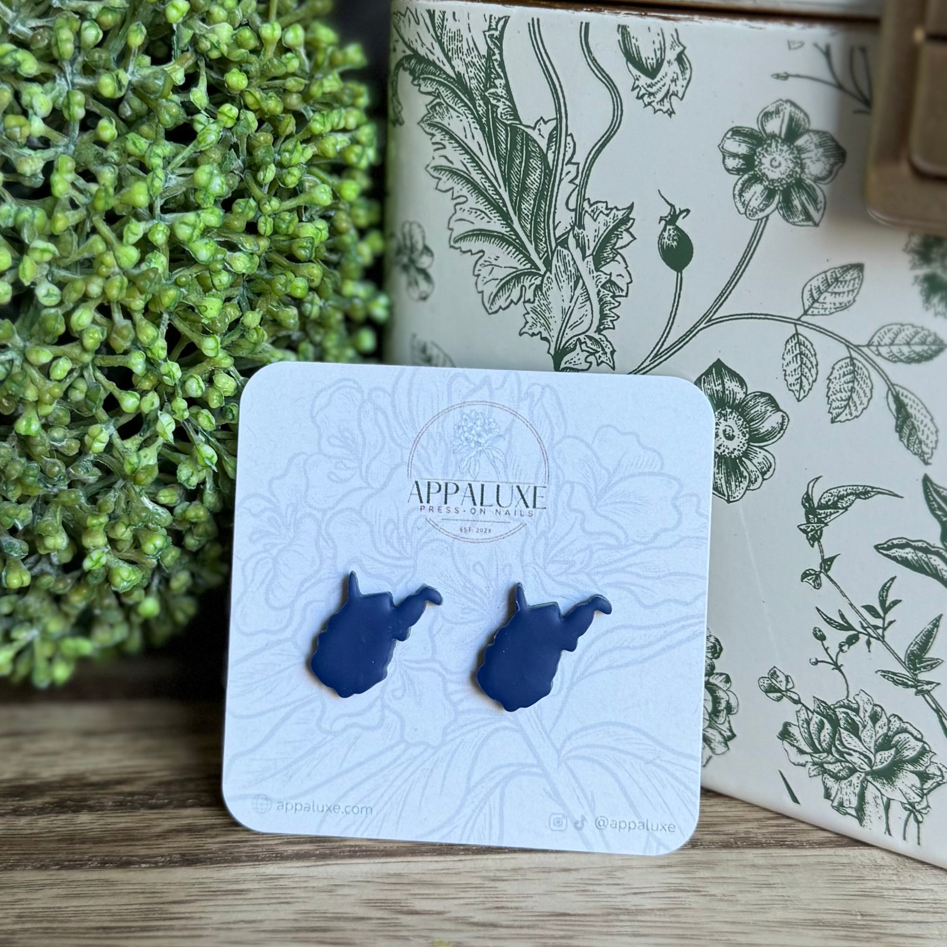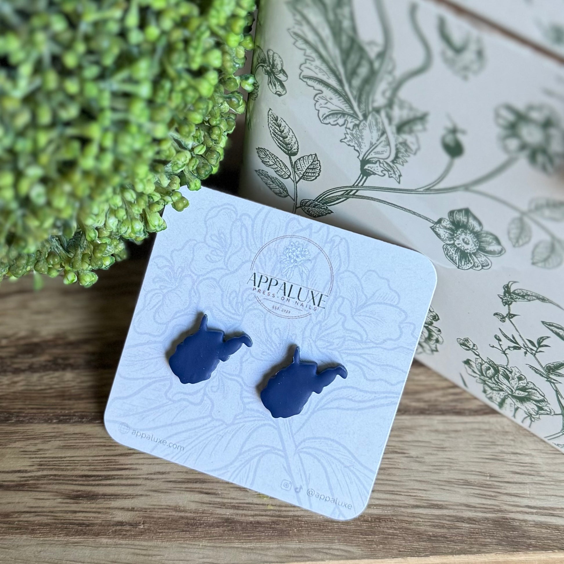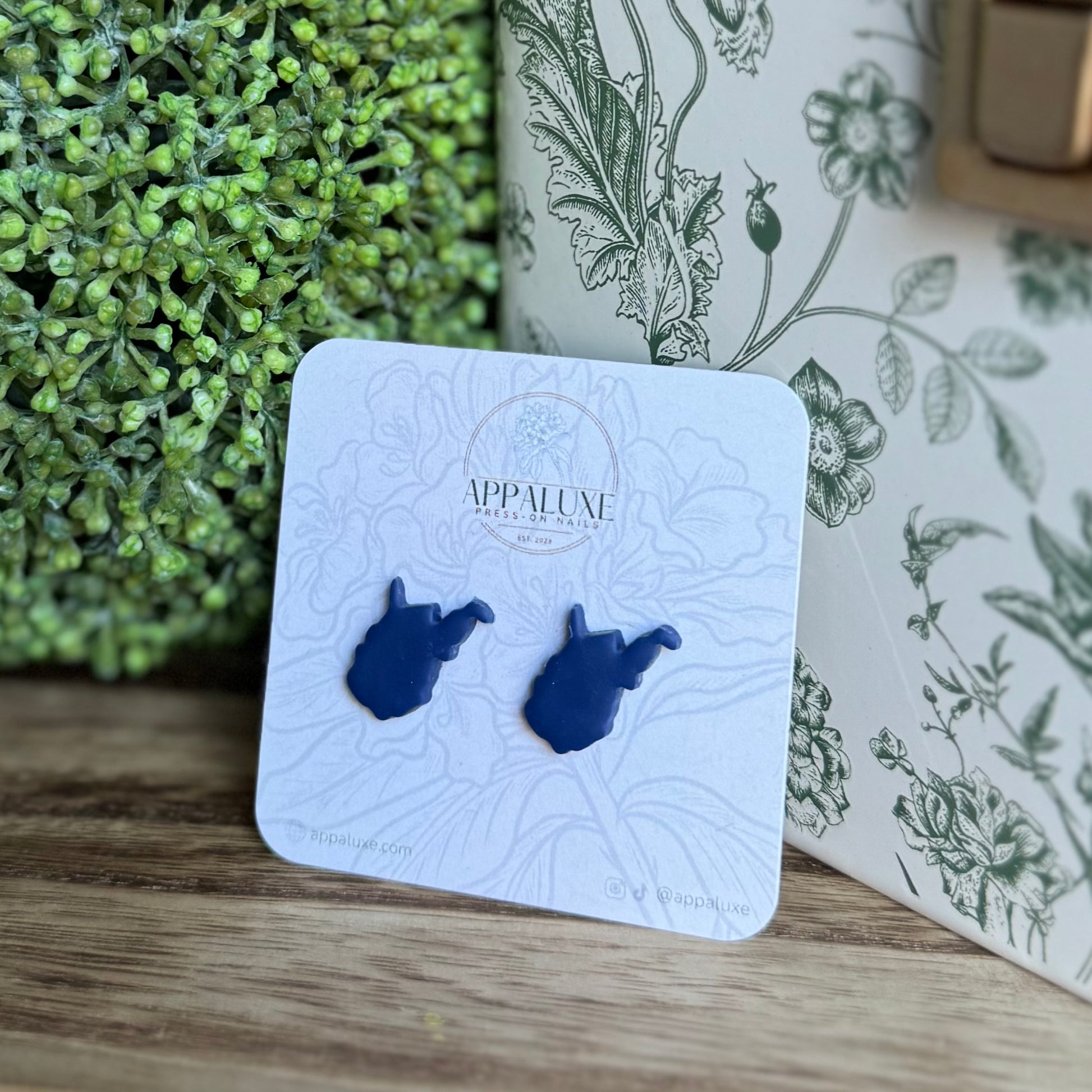 Celebrate your mountaineer spirit with these playful clay stud earrings in blue and gold. Perfect for fans of the state and team, they bring a fun, handcrafted touch to your everyday look while showing off your pride. Lightweight and colorful, they’re a charming way to carry your love for West Virginia wherever you go!