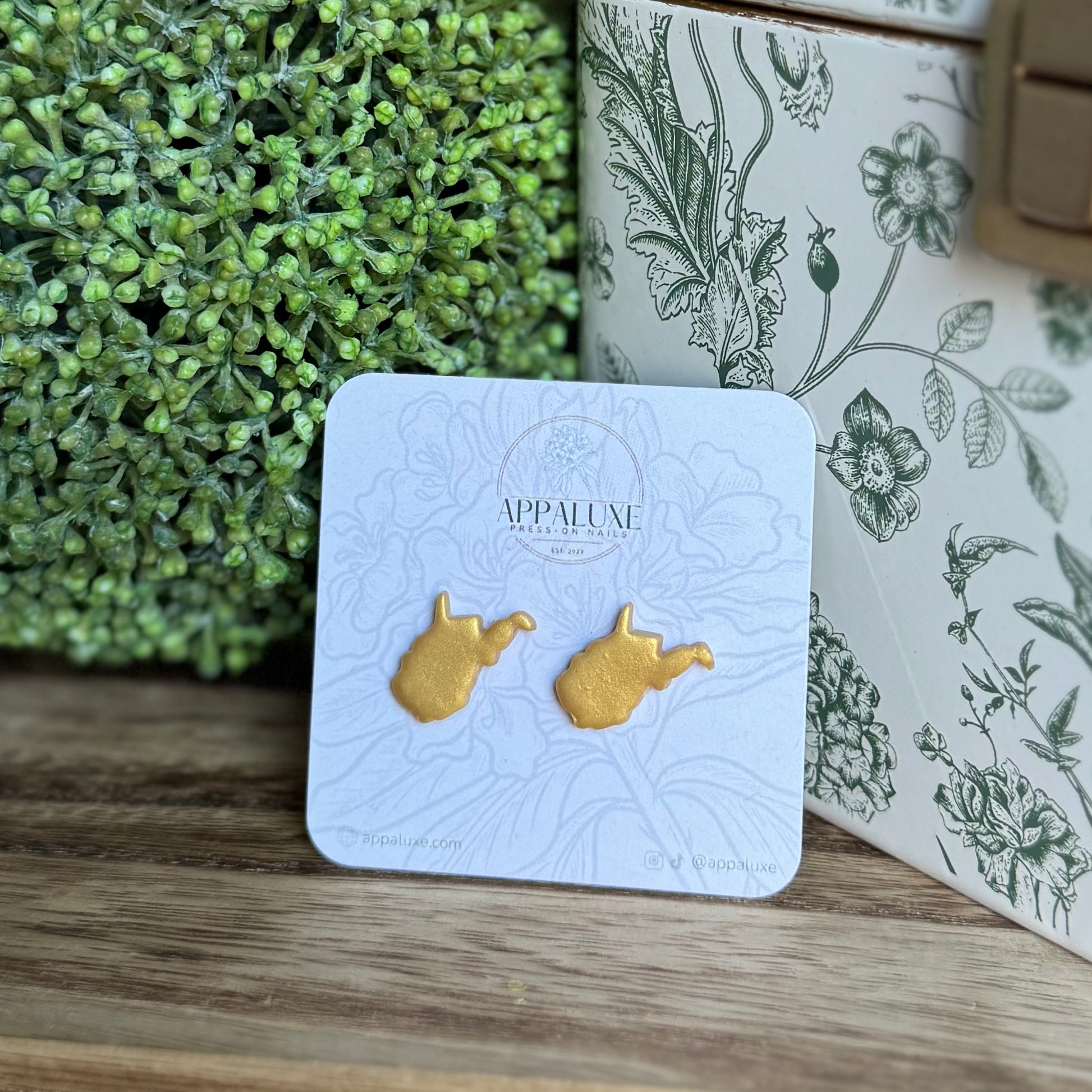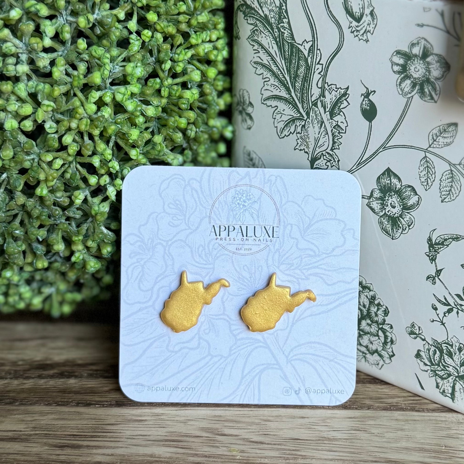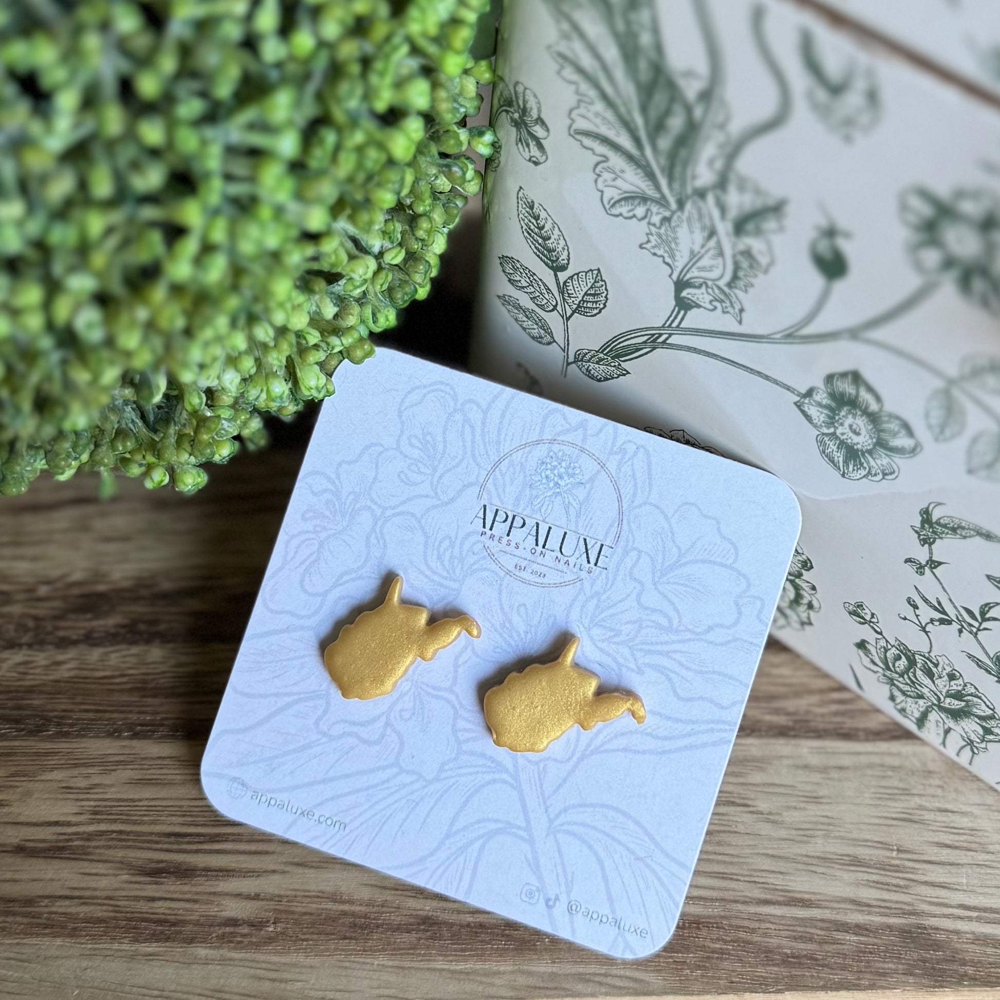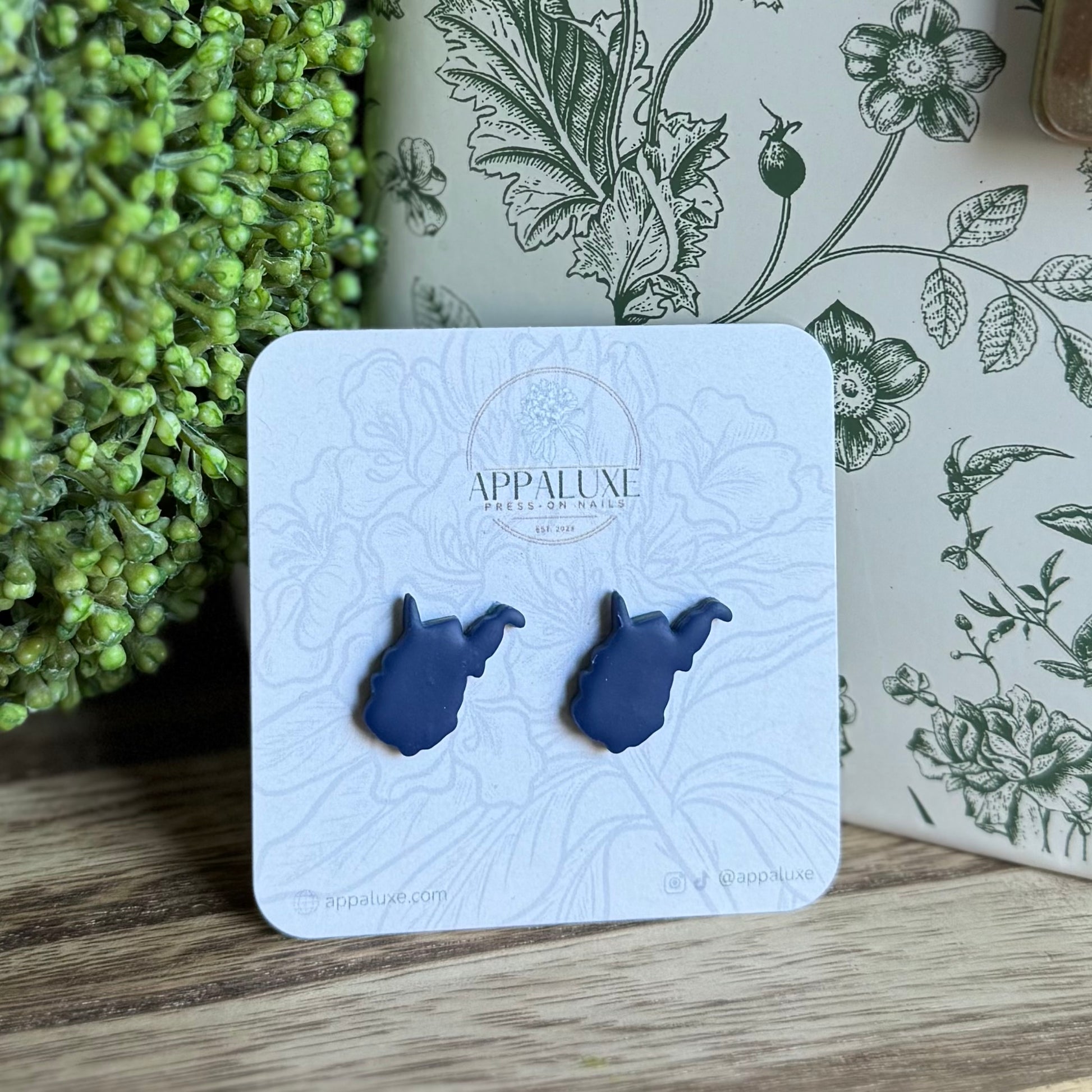 Celebrate your mountaineer spirit with these playful clay stud earrings in blue and gold. Perfect for fans of the state and team, they bring a fun, handcrafted touch to your everyday look while showing off your pride. Lightweight and colorful, they’re a charming way to carry your love for West Virginia wherever you go!